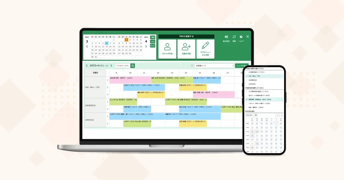 すべての顧客に予約確認メールを手作業で送るのは大変です。メールの送信や問い合わせ対応など、予約に関する業務負担を軽くしたい場合は、予約システムの導入を検討するのもいいでしょう。